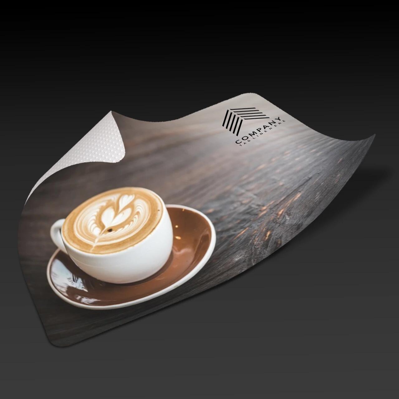 Super-thin anti-slip counter mats are printed directly on PVC 0.3 mm foil using UV printing technology. The imprint is secured with white paint and then covered with a special non-slip varnish in a dotted pattern, which keeps the mat in place, preventing it from sliding across the desk. We produce anti-slip advertising mats in any size and shape, depending on the customer's wishes.