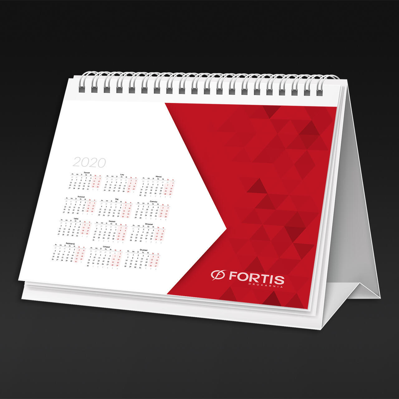 Kalendarz biurkowy to świetny pomysł na funkcjonalny prezent lub gadżet reklamowy. Piramidki składają się z kartonowej podstawy, 12 kart z miesięcznymi kalendariami oraz okładki. Poszczególne karty łączone są za pomocą spirali.